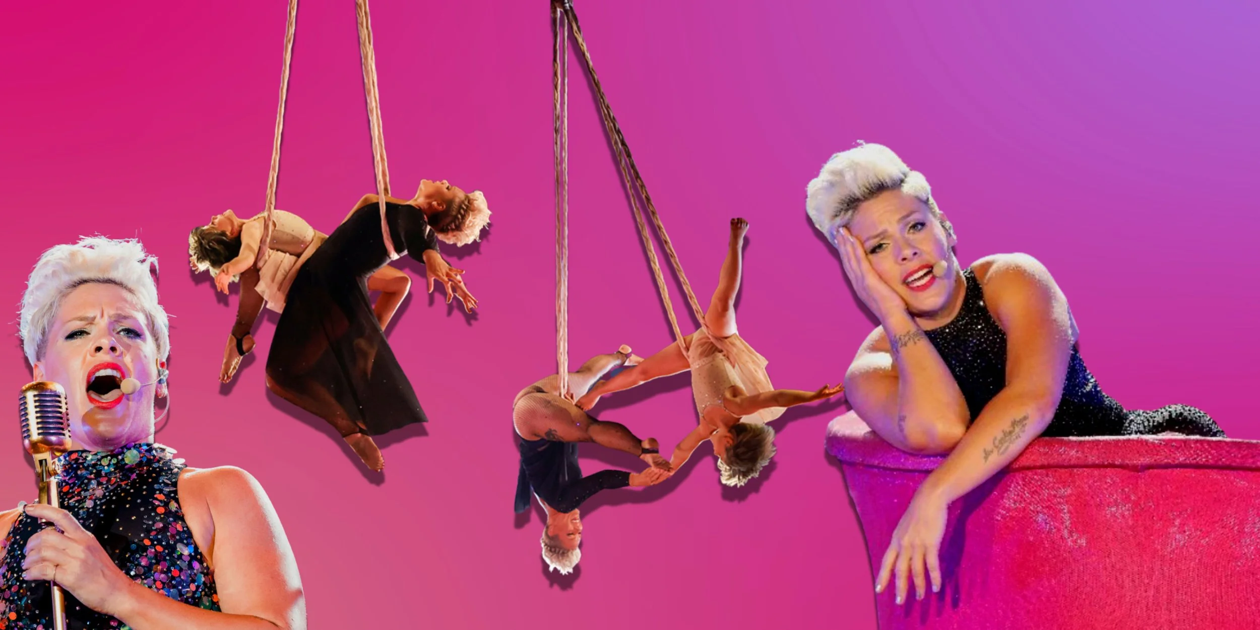 When my friend Christine invited me to join her Aerial Silks class, my mind conjured up flashbacks of the 2010 Grammy’s where singer songwriter Pink sang her song, ‘Glitter in the Air’ mid-air in aerial silks (a routine she is well known for when she goes on her world tours). To say I was intimidated to try this alternative work-out routine would be an understatement.